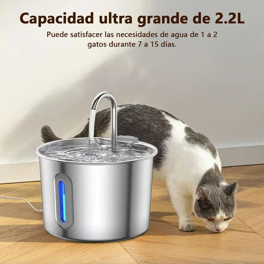 Fuente de Agua para Mascotas de Acero Inoxidable 2.2L