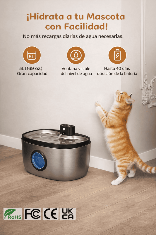 Fuente Inalámbrica Premium 5 L para Mascotas – Acero Inoxidable